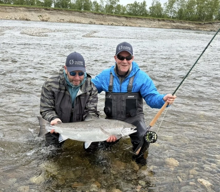 Rolf and manager of Olderø fly fishing Lodge Henrik Kassow Andersen presenting this years first fresh fish.